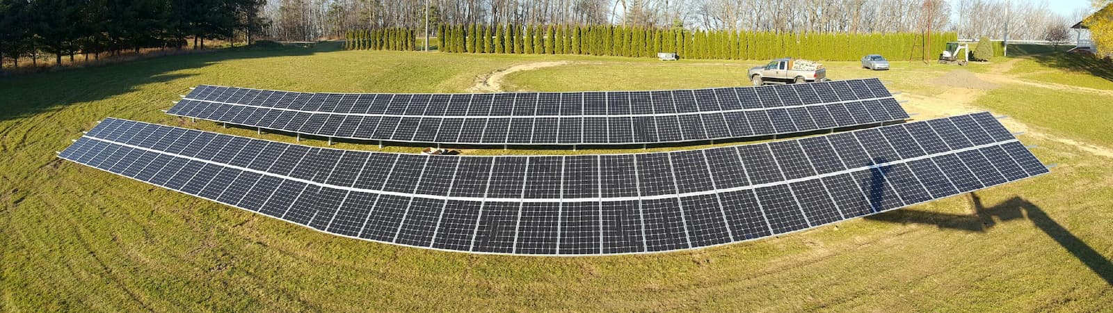 But that wouldn't generate anywhere near my annual kilowatt hour electricity energy usage. To equal my actual usage, I would need an approximately 44 kW array, or over five times as big as what CA law mandates (the top picture shows how big a 44 kW array is). Such a system would be at least 126 panels big (using the expensive high output 350 watt panels), assuming they were perfectly positioned due south at the correct sun angle. Such a system would never fit on a roof and would require, in my case, clear cutting a forest down to allow for sun access.