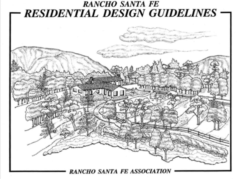 In the 1950’s, new residents purchased the generously sized parcels and built California Ranch homes. To help property owners navigate the Rancho Santa Fe aesthetic, the Association published a hand-illustrated book in the early nineties that detailed how to renovate or build new homes with a “this-not-that” description for everything from exterior light-fixture placement, landscaping, grading, and fencing, to architecture. These guidelines are meant to preserve the rural landscape and feel of the Ranch.